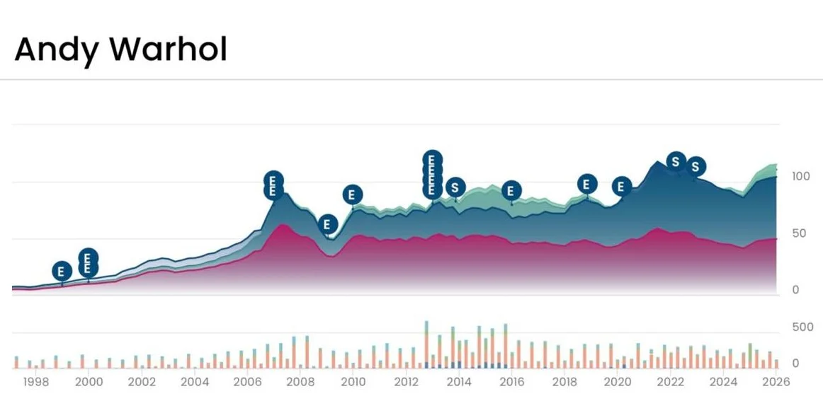 As an example, when I first started selling Warhol’s in 1999 you could buy the Warhol Superman print (from the edition of 200) for about $18,000; in 2023 two examples sold at auction for $616,000 and $750,000, respectively. There are, of course, ebbs and flows in people’s taste over time that can affect the market and value of specific pieces.
