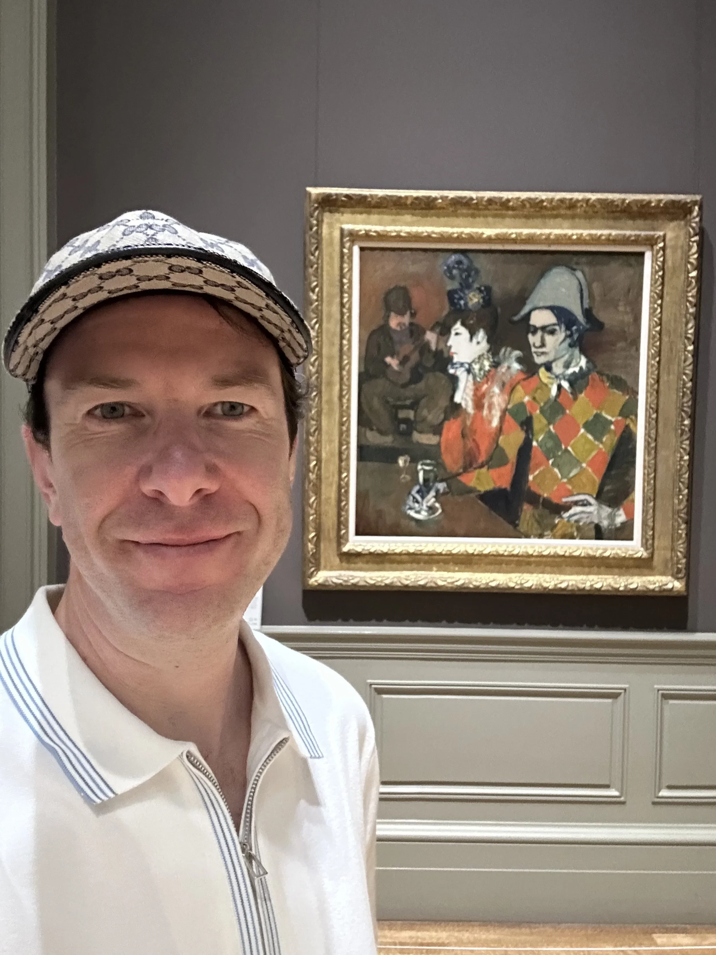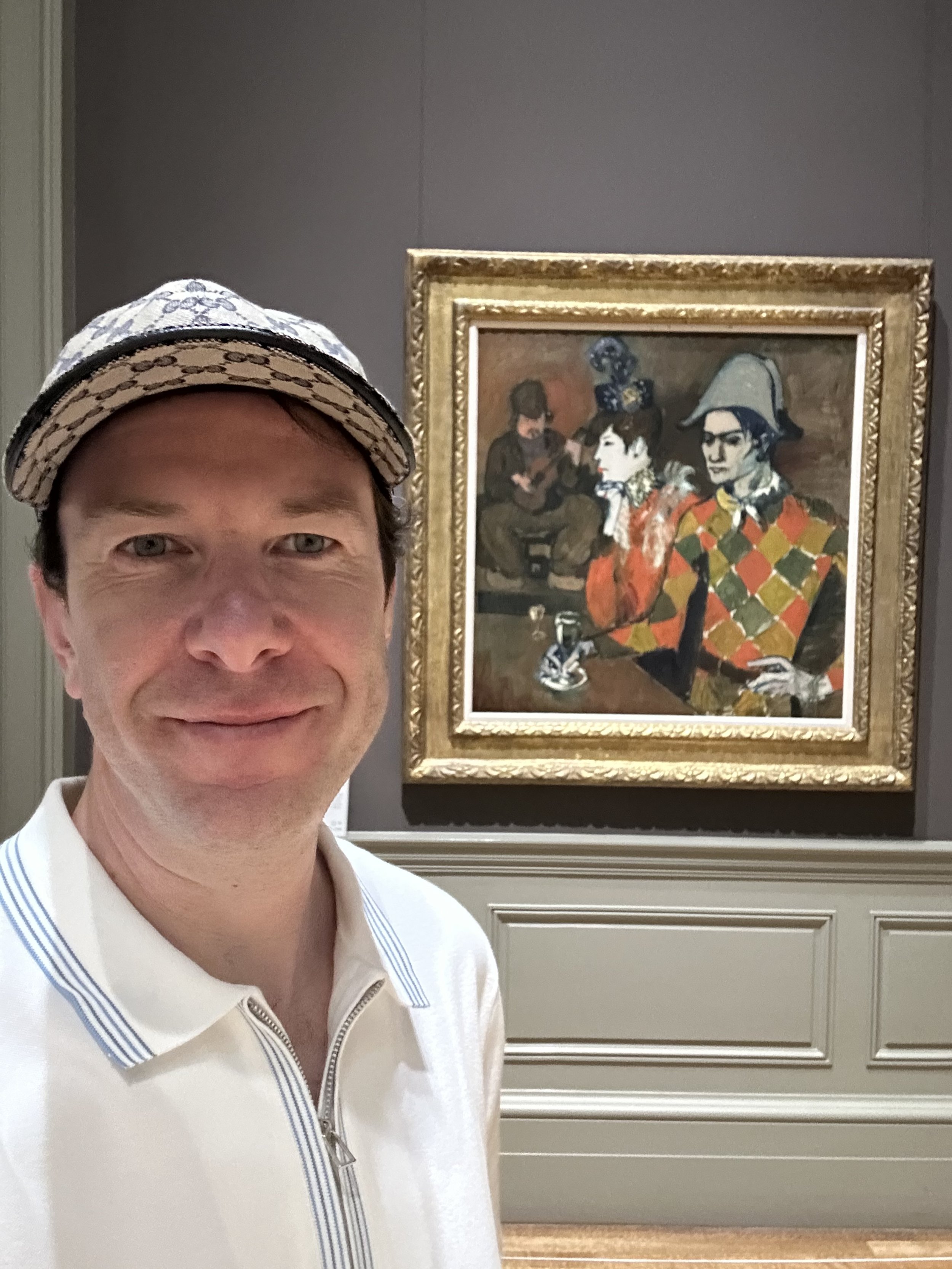 If you look at the painting itself, Picasso is pictured as this Harlequin character, something that he would paint over and over again –not only throughout this period, the Rose Period– but later throughout cubism.