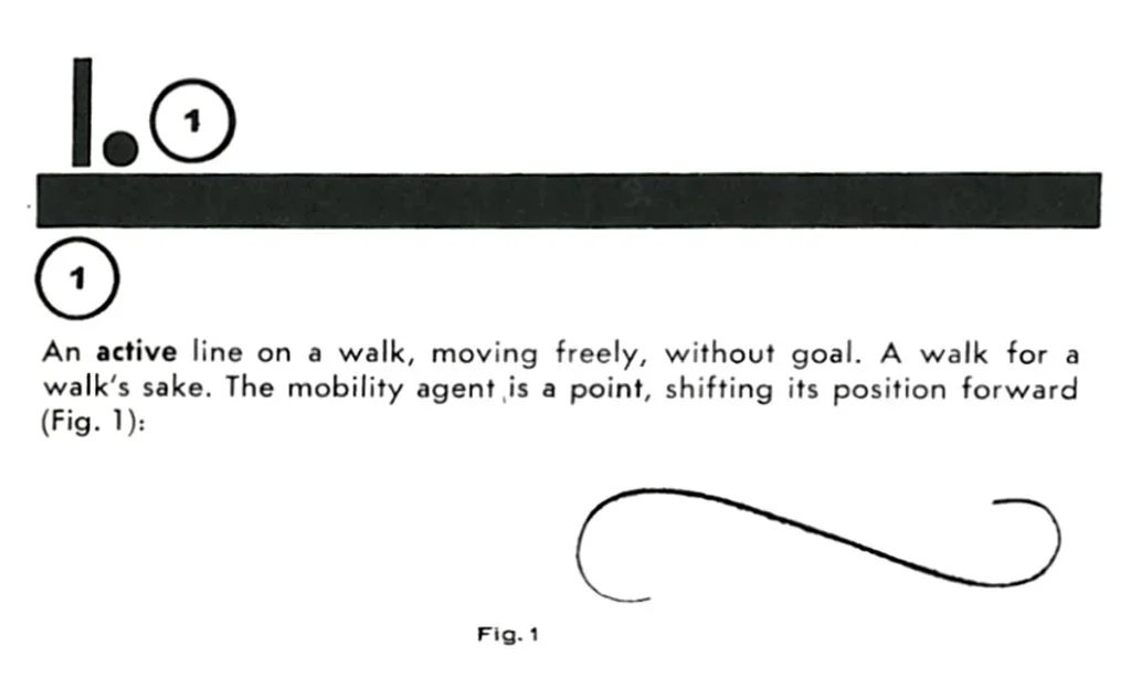 Paul Klee’s I.1, Fig. 1, circa 1925. Text and image are didactic tools for poetically defining a line—a prompt to open one’s mind to push beyond the ubiquity of this form that we don’t often think about but, yet, it semiotically ascribes meaning in its simplicity to our lives everyday.